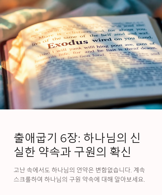 출애굽기 10장 강해 주석 - 여덟 번째와 아홉 번째 재앙 📍 설교 자료 다운로드 👉 📍 성경 구절 PPT 다운로드 👉 목차출애굽기 10장 개요본문 주석 – 메뚜기 재앙과 흑암 재앙히브리어 원문 분석바로의 거부와 하나님의 강력한 심판구약적 해석애굽 신들에 대한 하나님의 심판이스라엘을 위한 하나님의 보호신약적 해석예수님과 하나님의 능력죄의 어둠과 그리스도의 빛교회사적 해석초대교회 교부들의 해석종교개혁자들의 해석현대 신학에서의 해석오늘날 이 말씀을 어떻게 받아들여야 할까?관련 찬송가 추천1. 출애굽기 10장 개요출애굽기 10장은 여덟 번째 재앙(메뚜기)과 아홉 번째 재앙(흑암)이 애굽을 덮는 장면을 기록하고 있습니다. 하나님께서는 바로에게 반복적으로 기회를 주셨지만, 그는 여전히 회개하지 않았습니다..