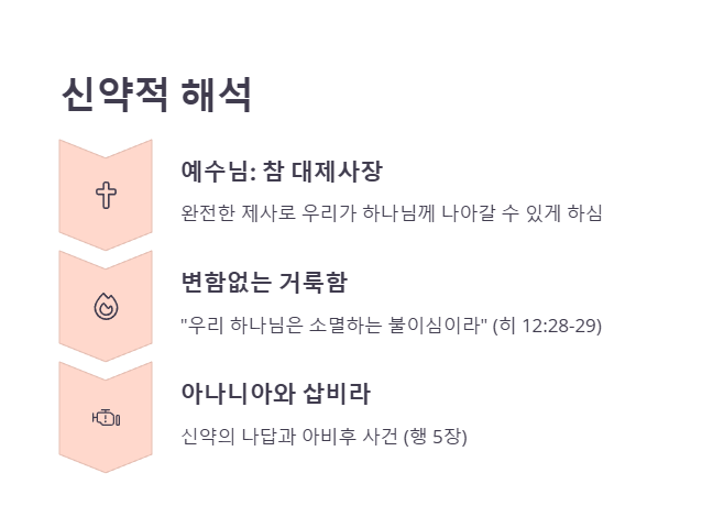 또한 📖 사도행전 5장에서 아나니아와 삽비라가 성령을 속이다가 죽임을 당한 사건은 신약의 나답과 아비후 사건이라 할 수 있습니다.