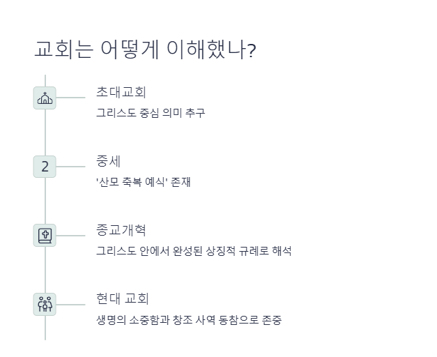 현대 교회에서는 생명의 소중함을 축복하며, 출산을 하나님의 창조 사역에 동참하는 행위로 존중합니다.