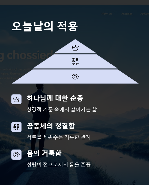 레위기 18장은 하나님의 백성은 도덕적, 윤리적 영역에서도 구별되어야 함을 강력히 선포합니다.