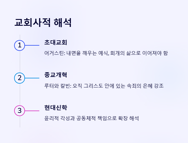 • 어거스틴은 속죄제를 인간의 내면을 깨우는 예식으로 보았으며, 정결의 의식이 회개의 삶으로 이어져야 한다고 강조했습니다.