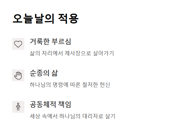 하나님은 오늘날도 자신의 백성을 부르시고, 거룩한 사명을 맡기십니다. 우리는 삶의 자리에서 제사장처럼 살아가며, 거룩함, 순종, 헌신의 삶을 통해 하나님께 예배드리는 존재로 서야 합니다. 또한 공동체 앞에서의 신실함과 책임감이 우리의 사명을 뒷받침해야 합니다.