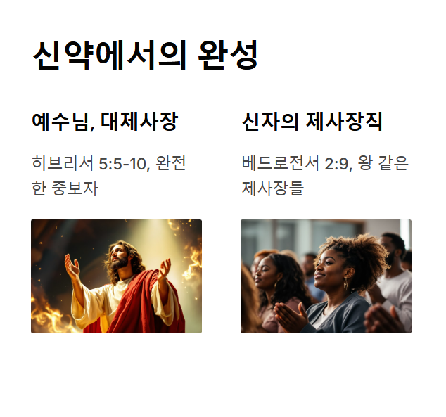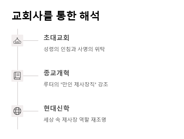 - 현대 신학은 부르심의 공공성과 공동체성, 그리고 제사장직의 윤리적 책임과 세상 속 헌신의 중요성을 강조합니다. 이는 목회자뿐 아니라 모든 성도의 ‘세상 속 제사장’ 역할을 재조명합니다.