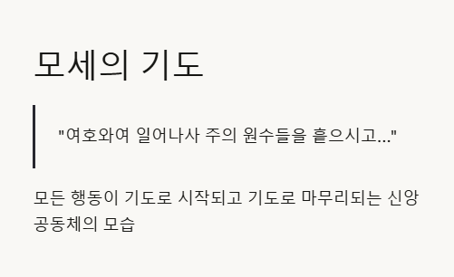 - 출발과 정지의 기도 (10:35–36): 모세는 이동 시마다 기도로 하나님의 임재를 의식합니다. 이는 모든 행동이 하나님 중심으로 이루어져야 함을 보여줍니다.