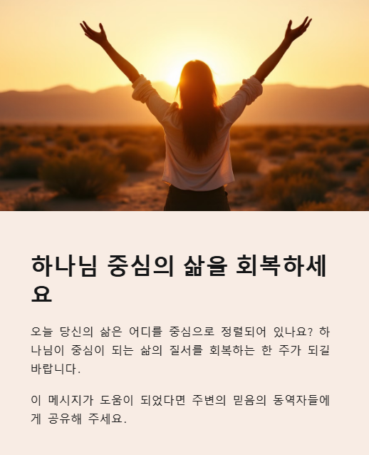 우리의 삶과 공동체가 하나님 중심으로 정렬되어 있는가를 점검해야 합니다.