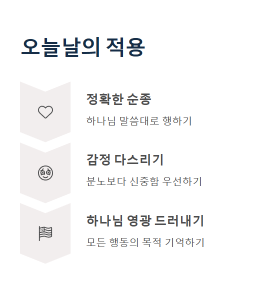 믿음은 단순히 하나님을 안다고 말하는 것이 아니라, 그분의 말씀에 정확히 순종하는 삶의 태도로 드러나야 합니다.