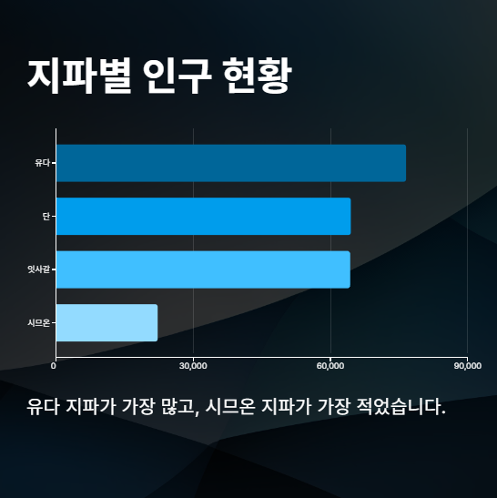 - 가장 많은 인구: 유다 지파 (76,500명)
