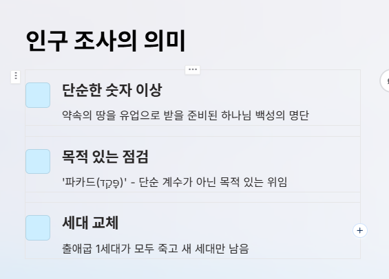 - ‘파카드’ (פָּקַד) – 계수하다, 맡기다. 단순 숫자보다 목적 있는 점검과 위임의 의미.
