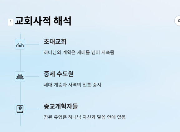 초대교회는 이 장을 통해 하나님의 계획은 세대를 넘어 지속된다는 점을 강조했고, 중세 수도원은 세대 계승과 사역의 전통을 중시하는 근거로 보았습니다.