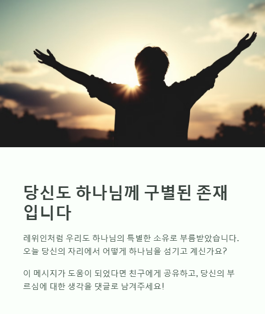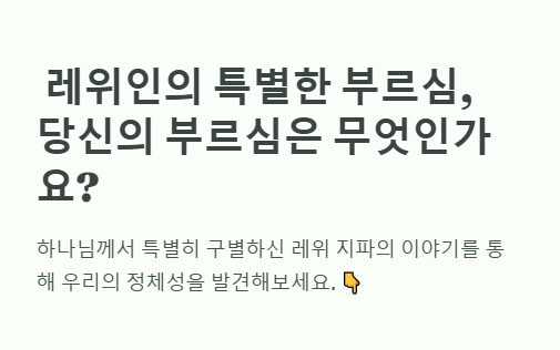 오늘날 성도는 하나님의 소유로 구별된 레위인처럼, 각자의 삶에서 하나님을 섬기며 살아야 합니다.