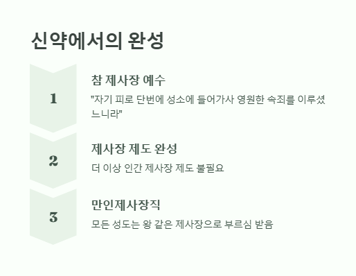 신약에서는 예수 그리스도께서 참된 제사장이자 대속물이 되셨기에, 더 이상 인간 제사장 제도는 필요치 않게 되었습니다 (히 7:27).