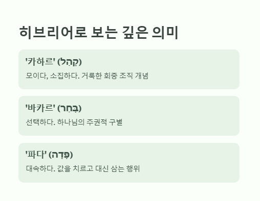 - ‘파다’ (פָּדָה) – 대속하다. 값을 치르고 대신 삼는 행위.