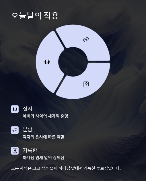 모든 사역은 크고 작음 없이 하나님 앞에서 거룩한 부르심이며, 우리는 각자의 역할을 충성되이 감당해야 합니다.