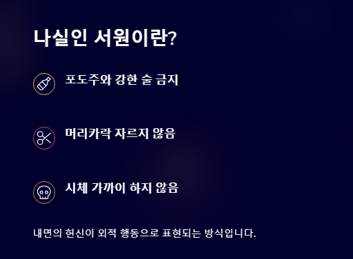 나실인은 특정 기간 동안 포도주와 강한 술을 금하고, 머리를 자르지 않으며, 시체를 가까이하지 않는 규례를 지킵니다 (6:1–8). 이는 내면의 헌신이 외적 행동으로 표현되는 방식입니다.