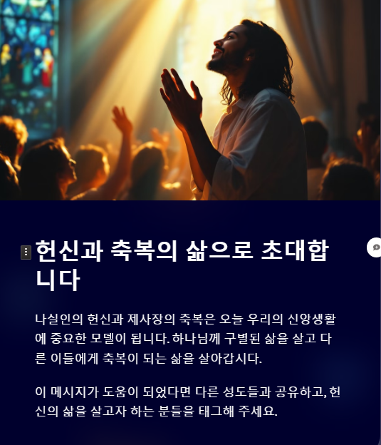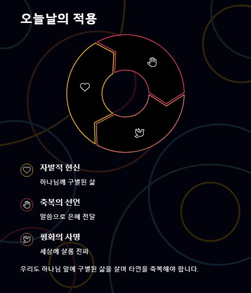 또한 교회는 왕 같은 제사장으로서 축복의 통로로 부름받았으며, 세상 가운데 샬롬을 전하는 공동체로 살아가야 합니다.