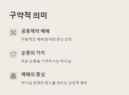 또한 제단 봉헌은 하나님의 임재가 머무는 장소를 예배의 중심으로 세우는 상징적 행위입니다.