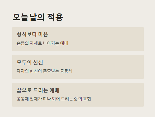 오늘날 교회와 신자는 형식적 헌물보다, 하나님 앞에 동일한 마음과 순종으로 나아가는 자세를 회복해야 합니다.