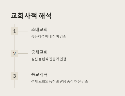 종교개혁자들은 진정한 예배는 전체 교회의 동참과 말씀 중심의 헌신이라는 점을 이 본문에서 찾았습니다.