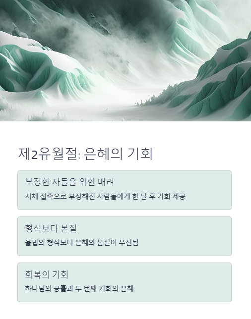 하나님은 우리 삶의 절기를 통해 구원을 기억하게 하시며, 넘어졌을 때도 회복의 기회를 열어주시는 긍휼의 하나님이심을 믿고 따라야 합니다.