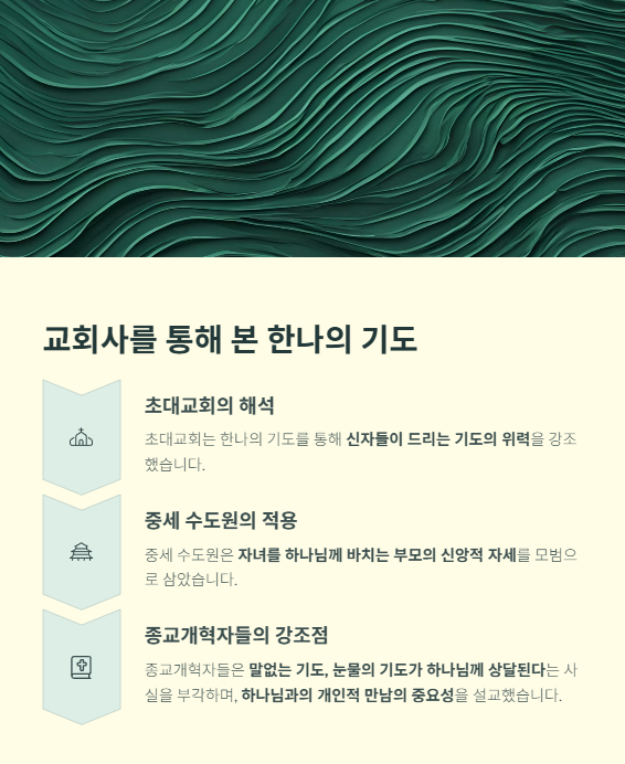 초대교회는 한나의 기도를 통해 신자들이 드리는 기도의 위력을 강조했고,