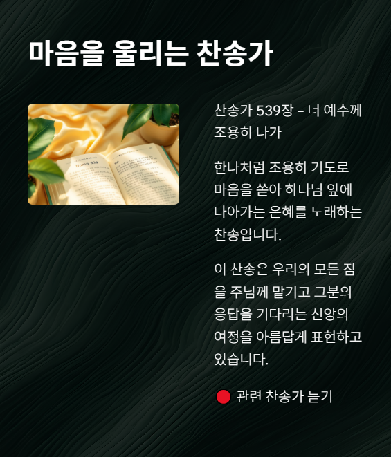 한나처럼 조용히 기도로 마음을 쏟아 하나님 앞에 나아가는 은혜를 노래하는 찬송입니다.