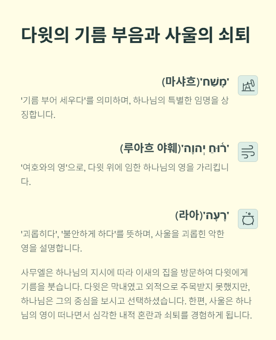 - 본문 주석 – 다윗의 기름 부음과 사울의 쇠퇴