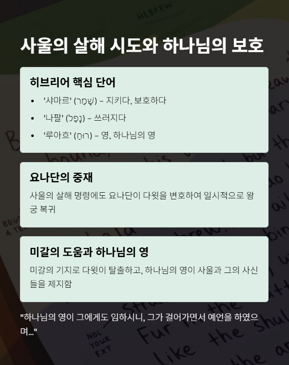 - 본문 주석 – 사울의 살해 시도와 하나님의 보호