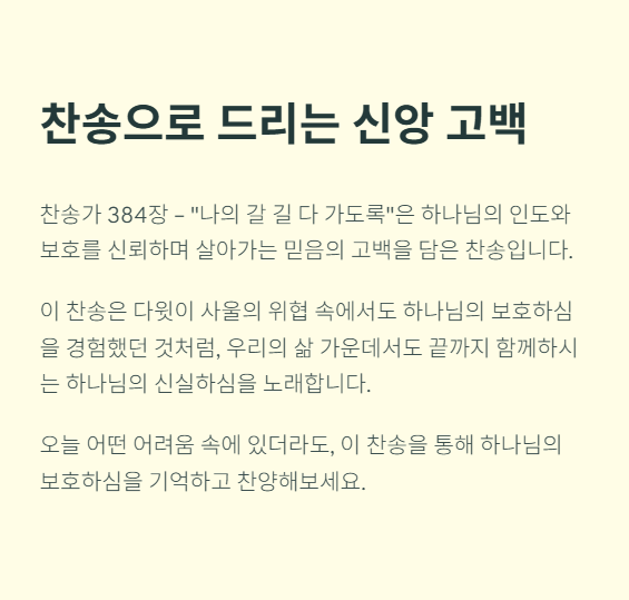 하나님의 인도와 보호를 신뢰하며 살아가는 믿음의 고백을 담은 찬송입니다.