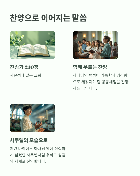 사무엘처럼 조용히 섬기고, 하나님의 은혜 안에서 자라나는 신앙의 자세가 오늘 우리에게 필요합니다.