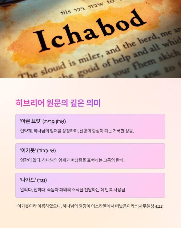 이가봇은 단순한 이름이 아니라, 하나님 없이 신앙생활을 이어가는 것의 공허함과 심판을 상징합니다.