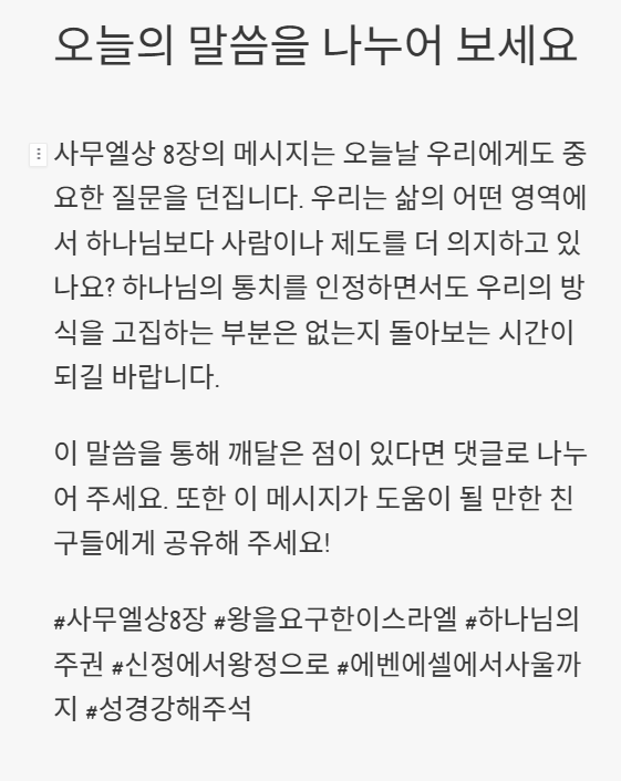 - 본문 주석 – 인간 왕에 대한 갈망과 하나님의 응답