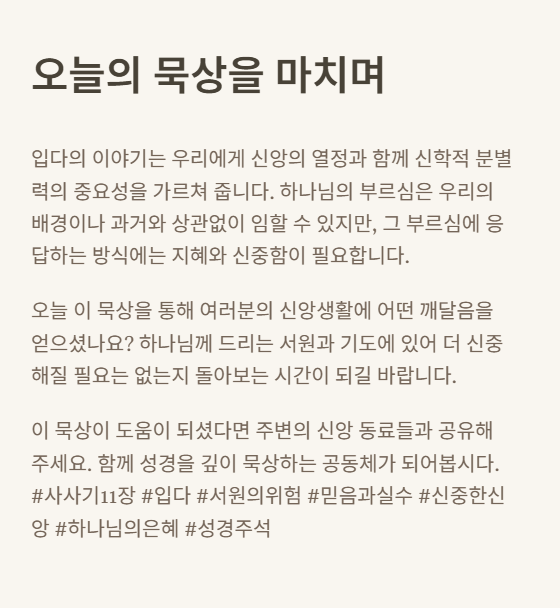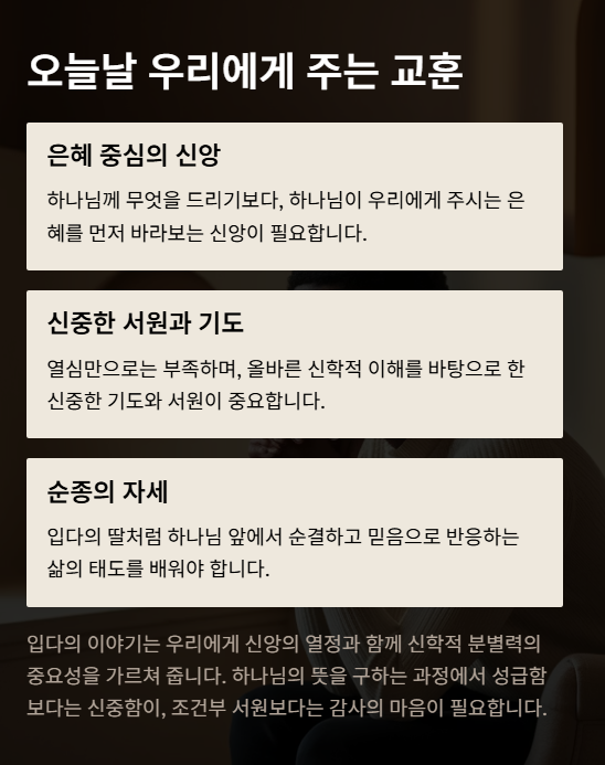 입다처럼 기도와 서원이 열심일 수는 있지만, 잘못된 신학은 신앙을 왜곡할 수 있습니다.
