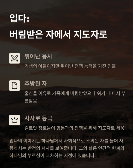- 입다의 부름과 사사로의 등극 (1–11절)