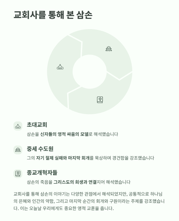 초대교회는 삼손을 신자들의 영적 싸움의 모델로 보았고,
