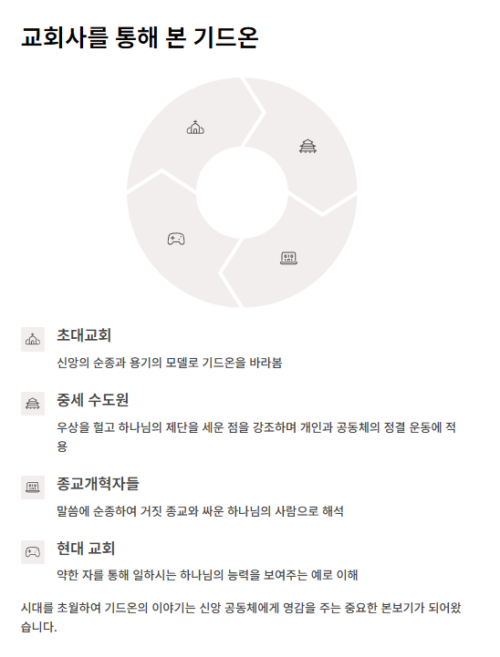 초대교회는 기드온을 신앙의 순종과 용기의 모델로 삼았고,