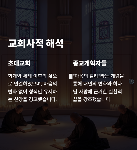 종교개혁자들은 “마음의 할례”라는 개념을 통해 내면의 변화와 하나님 사랑에 근거한 실천적 삶을 강조했습니다.