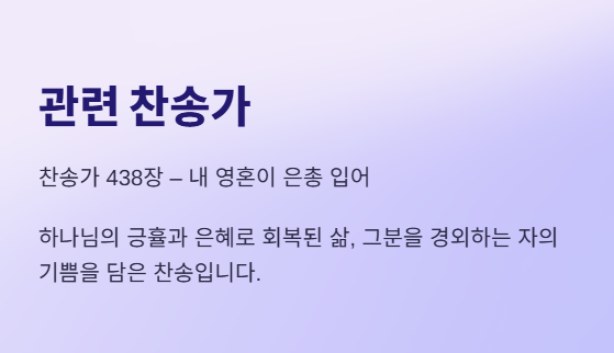 하나님의 긍휼과 은혜로 회복된 삶, 그분을 경외하는 자의 기쁨을 담은 찬송입니다.