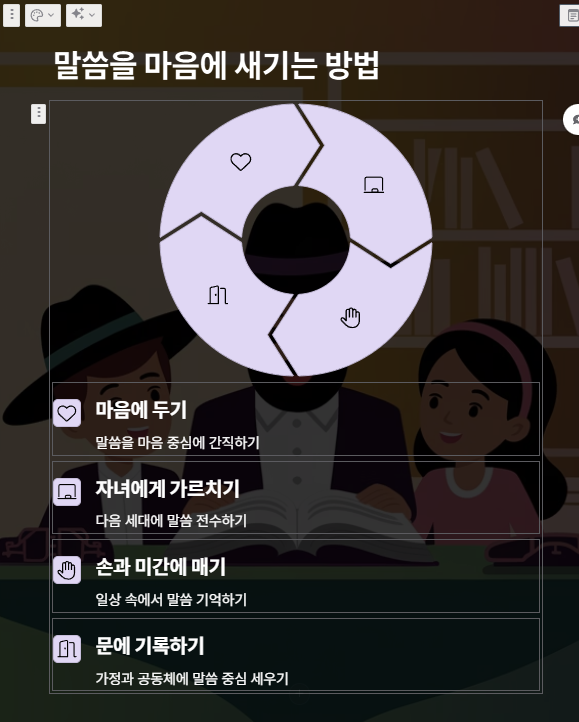 • 이는 단지 기억의 수준이 아니라, 삶 전체가 말씀 중심으로 조직되어야 함을 의미합니다.