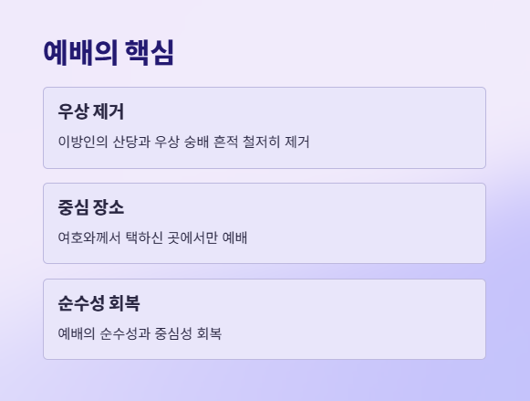 이는 예배의 순수성과 중심성을 회복하라는 하나님의 뜻입니다.