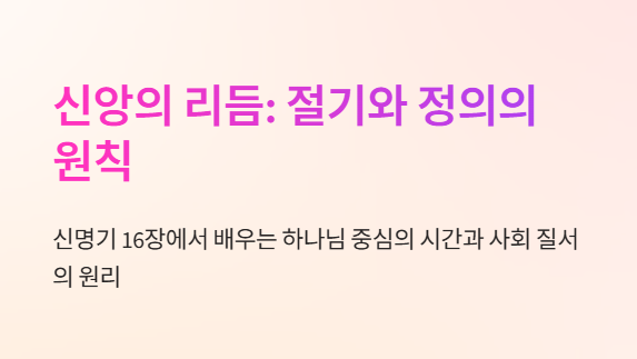 절기는 단지 전통이 아니라, 삶의 리듬을 하나님 중심으로 재구성하는 은혜의 기회입니다.