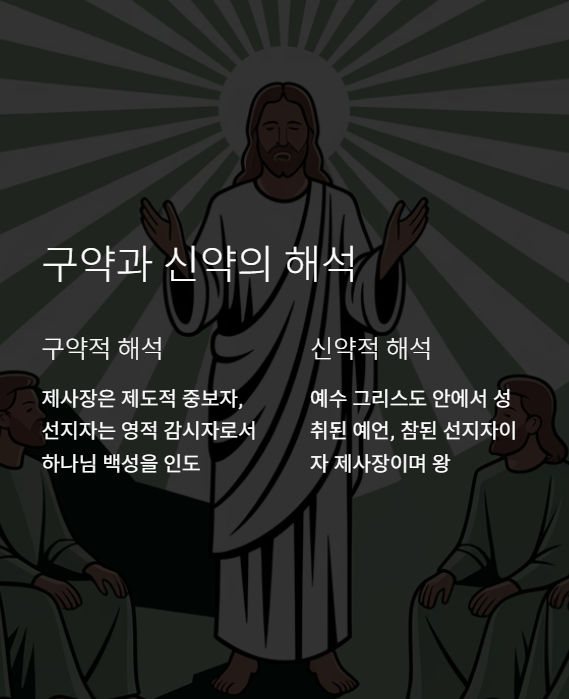 구약에서 제사장은 제도적 중보자이고, 선지자는 하나님의 음성을 대언하는 영적 감시자입니다.