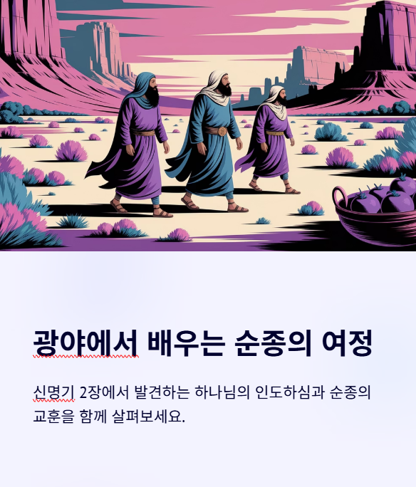 광야 40년은 단순한 방황이 아니라, 하나님의 교훈과 보호, 심판과 훈련이 담긴 시간이었습니다. 이 장은 또한 하나님의 인도하심은 우회와 기다림을 통해 완성되기도 함을 가르칩니다.