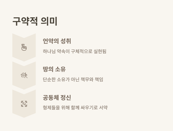 신약에서는 이러한 정복과 분배의 사건을 믿음의 유업, 즉 하나님 나라를 향한 여정과 상속으로 이해합니다.