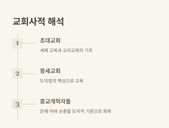 종교개혁자들은 십계명을 오직 은혜 아래 순종해야 할 도덕적 기준으로 회복하며, 율법과 복음의 균형을 강조했습니다.