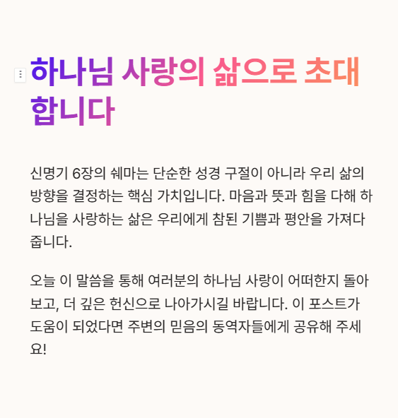 하나님 사랑은 단지 감정이 아니라, 삶 전체를 통과해 표현되는 헌신입니다.