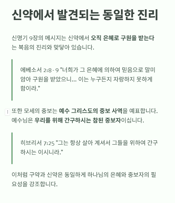 - 그러나 그 이유는 이스라엘이 의로워서가 아니라, 가나안 족속의 죄악과 하나님의 언약 때문이라고 명확히 한다.