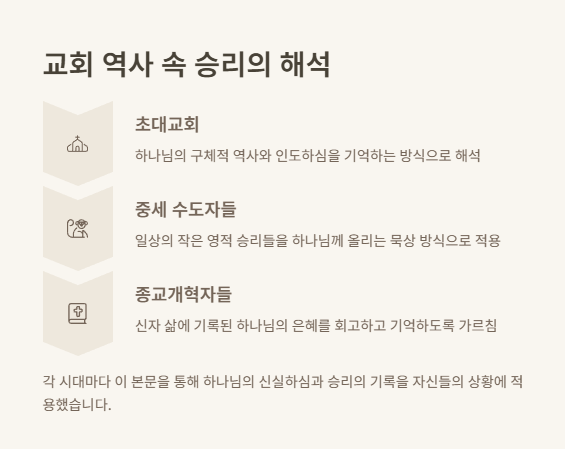 중세 수도자들은 자신의 일상에서 작지만 반복되는 영적 승리들을 하나님께 올리는 방식으로 이 본문을 묵상했습니다.