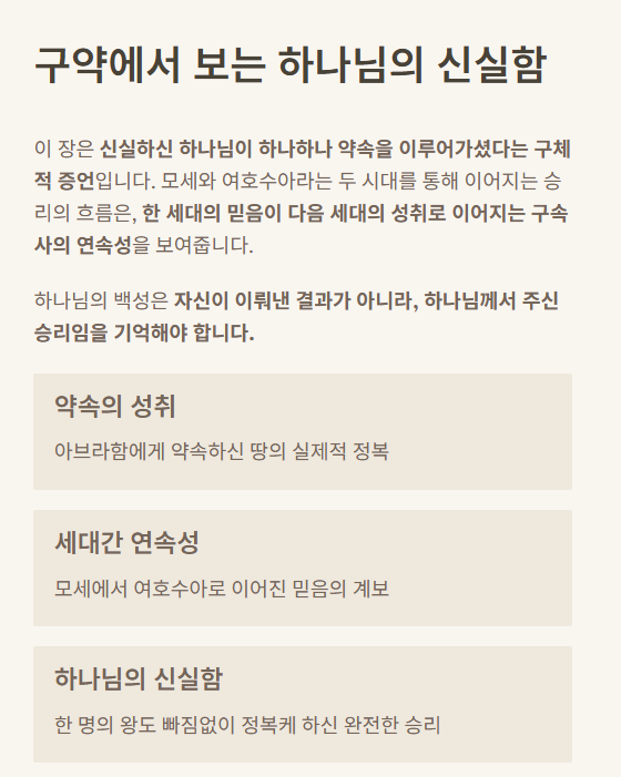 하나님의 약속이 어떻게 실제로 이루어졌는지를 입증하는 역사적 근거가 됩니다.
