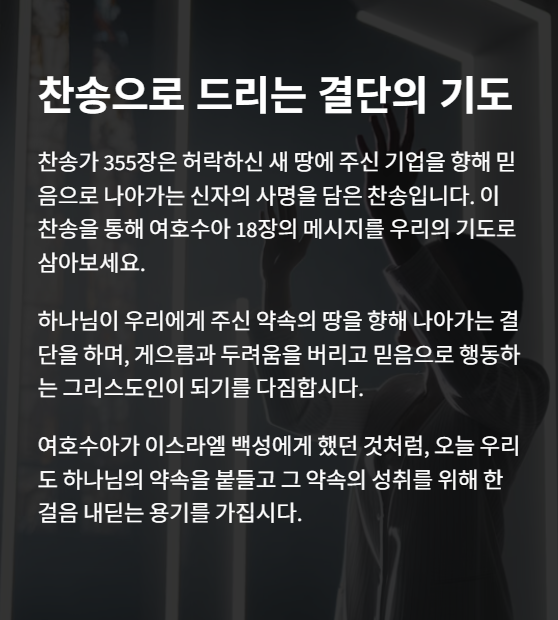 주신 기업을 향해 믿음으로 나아가는 신자의 사명을 담은 찬송입니다.