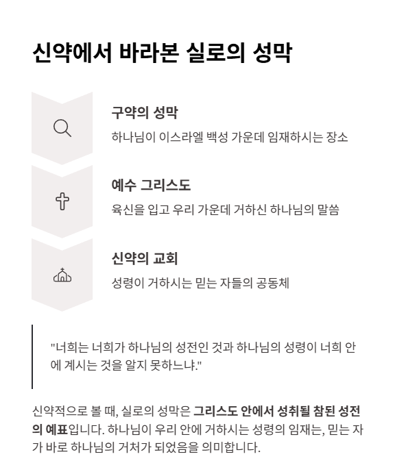 신약적으로 볼 때, 실로의 성막은 그리스도 안에서 성취될 참된 성전의 예표입니다.